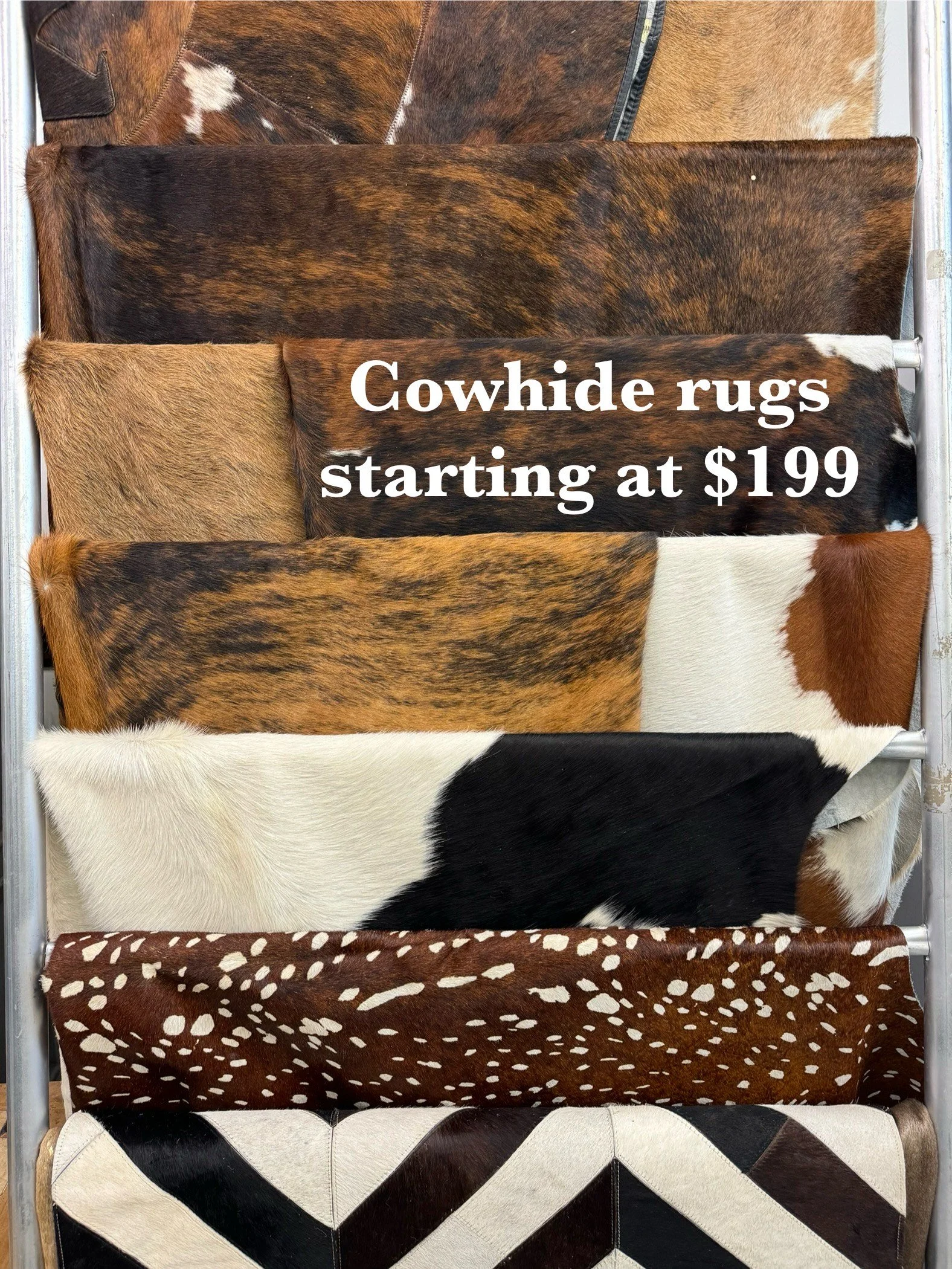 Please come visit our Northwest Arkansas store location to see our current in stock selection of cowhide rugs and runners!